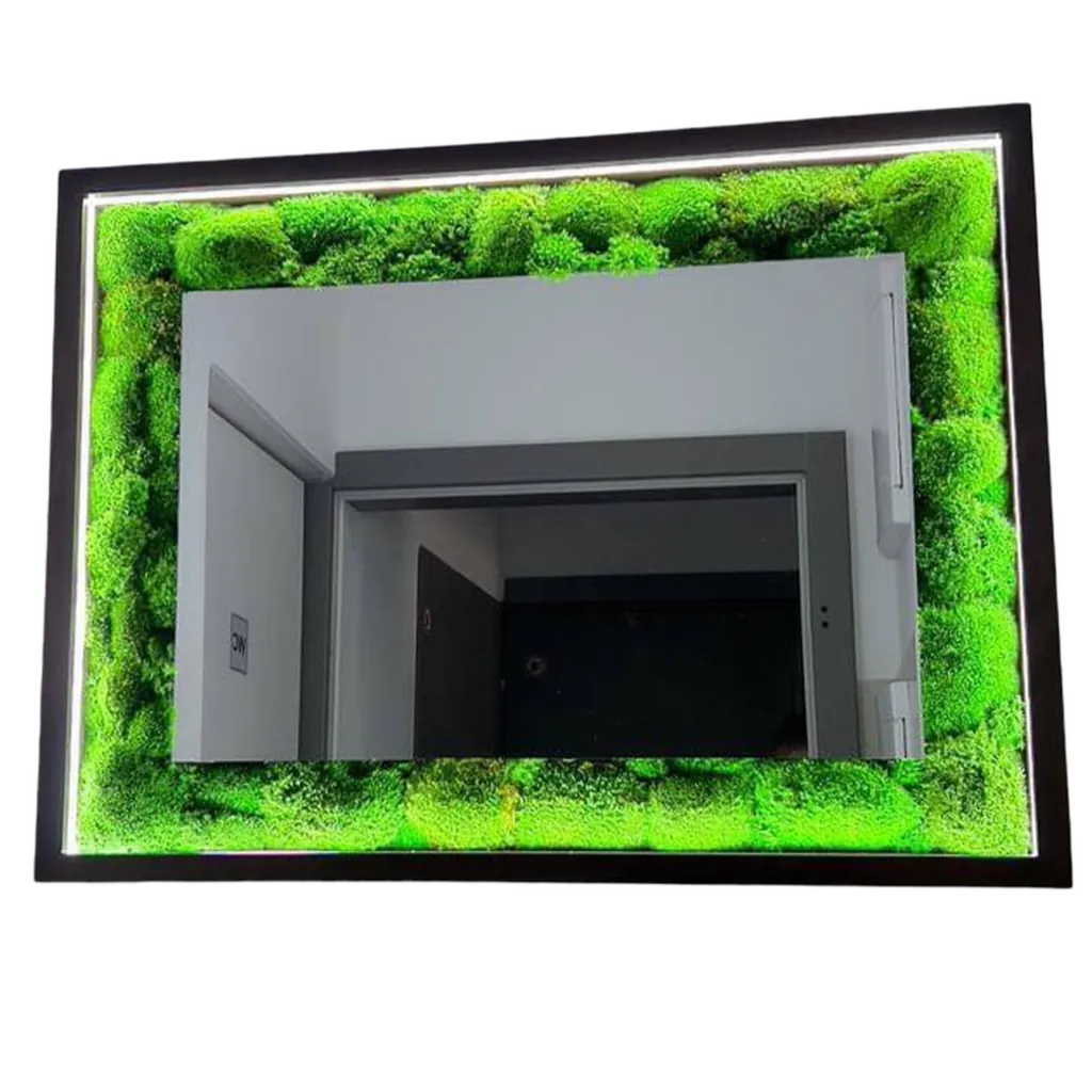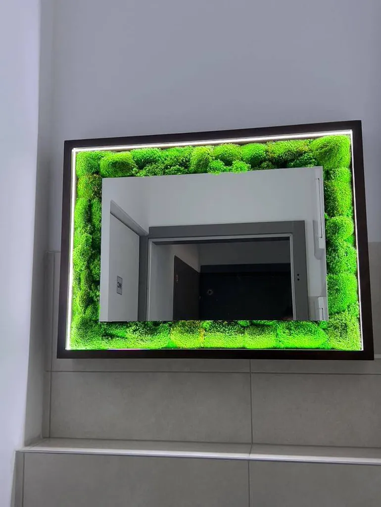 Мохове дзеркало з дерев’яною рамкою та підсвіткою ідеально підходить для різних приміщень: