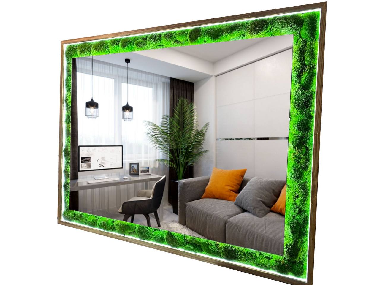 Мохове дзеркало з дерев’яною рамкою та підсвіткою